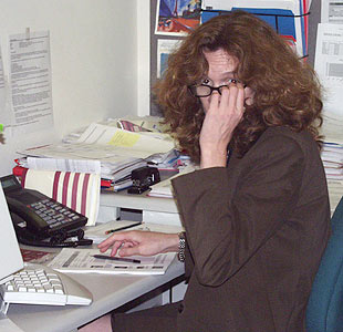 Denise, caught by surprise at work. October 5, 2001